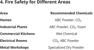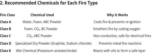 Discover which chemicals are best for different fire types in homes, industries, and malls. Complete guide to fire protection system chemicals and safety precautions.